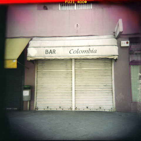 This Project develops around the name of “Colombia” as a place, which is presented outside “Colombia” as a place. For this Project images of different places called “Colombia” had been taken in places that are not “Colombia”. Streets with this name in other cities from other countries. This is an ongoing Project and continues to grow as a collection of post cards that I obsessively look for whenever I have the opportunity of traveling outside of Colombia. In this version, when I traveled to other places with the name "Colombia", I went over those places and I photographied with a Holga camera the thing that remember me my country. So I found escenes like marks against the war in Buenos Aires and Córdoba (ES), a liberty statue and the Embassy of the USA in Buenos Aires street, a "frog" game and a statue of Santander in Paris, a statue of Bolívar in Sevilla, a child with a toy gun in Barcelona and a spaniard woman with a latin domestic employee in Madrid, among other things. |