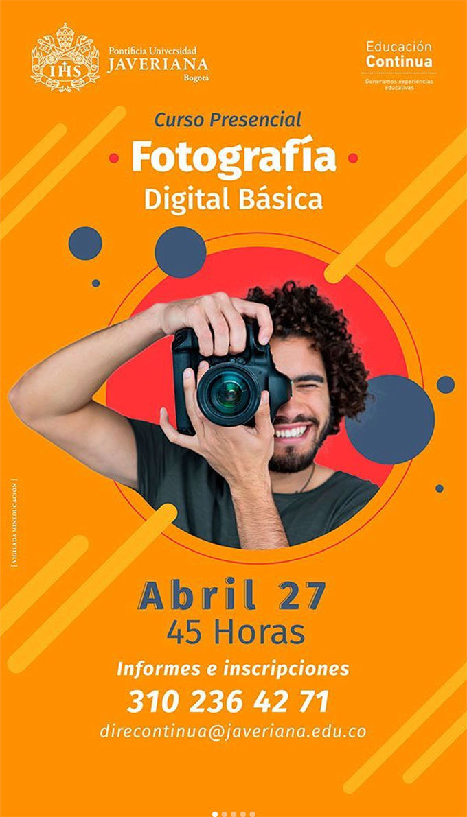 Invited to enroll in the face-to-face course BASIC DIGITAL PHOTOGRAPHY, Continuing Education program of the Javeriana University. Registrations here.