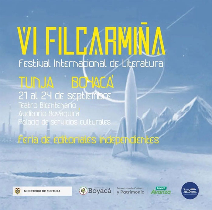My books PHOTODRAMAS, NOCTUORIO, VIDEOGRAMA and MI LIBRITO DE ORACIONES will be present at the VI FILCARMIÑA INTERNATIONAL LITERATURE FESTIVAL, at the Independent Publishers Fair, from September 21 to 24, Tunja, Colombia