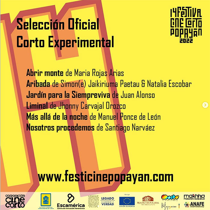 Our video GARDEN FOR FOREVER (Nicolás Rico, Juan Alonso) is presented at the 14th POPAYÁN SHORT FILM FESTIVAL, Popayán, Colombia,