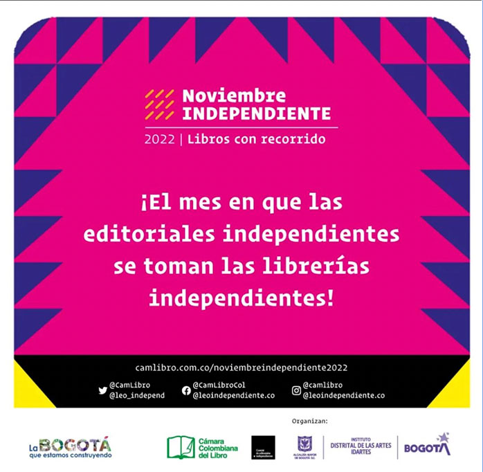My books will be in INDEPENDENT NOVEMBER, an event organized by the Colombian Book Chamber, November.