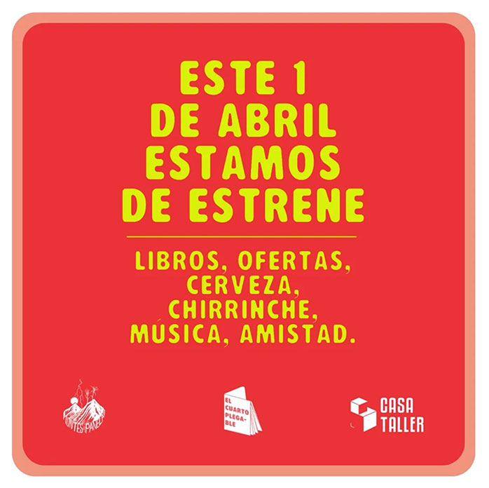 Invited on April 1, to the inauguration of the new bookstore of El Cuarto Plegable, and to know my publications!