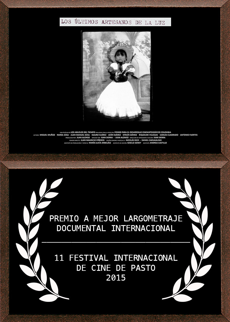 HONOUR MENTION FOR THE DOCUMENTARY "THE LAST CRAFTSMEN OF LIGHT" (Juan Alonso, Ivan Sierra", "Acknowledgments of short and long films of fiction, documentary and animation for their dissemination in public libraries", Culture Ministry, Colombia.