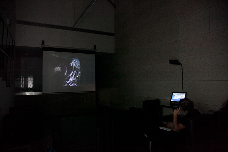 VIDEO "VORACITY" (Nelly Barreto, Juan Alonso) AT THE EXHIBITION "THE SOUP IS DELICIOUS", Project Hall, Art Department, University of los Andes, Bogotá, Colombia.