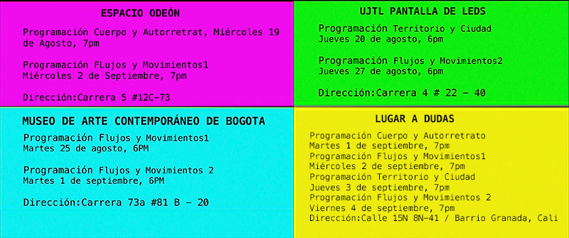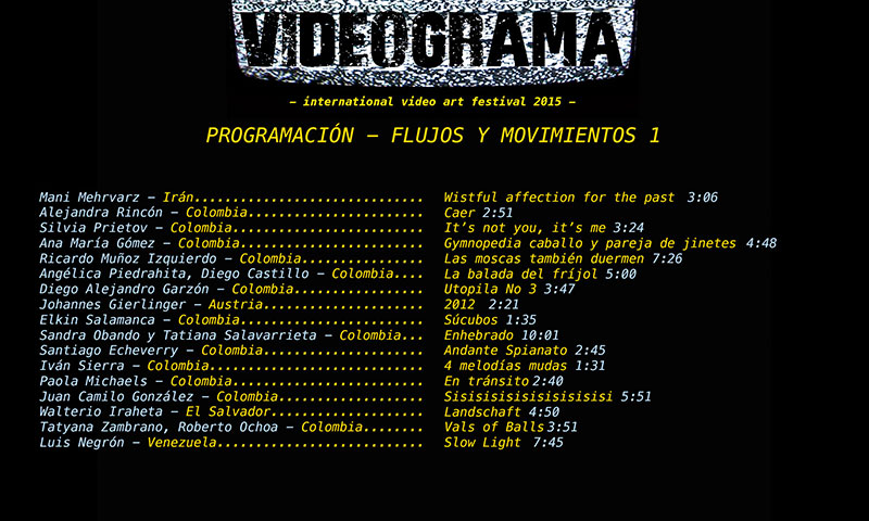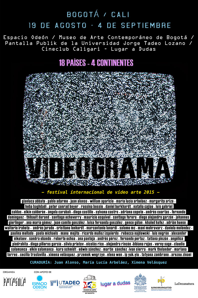 VIDEOGRAMA. INTERNATIONAL VIDEO ART FESTIVAL 2015, organized by Patasola Collective (Ximena Velásquez, María Lucía Arbeláez and Juan Alonso) will be exhibited in Bogotá and Cali from August 24th to September 5th, 2015!
