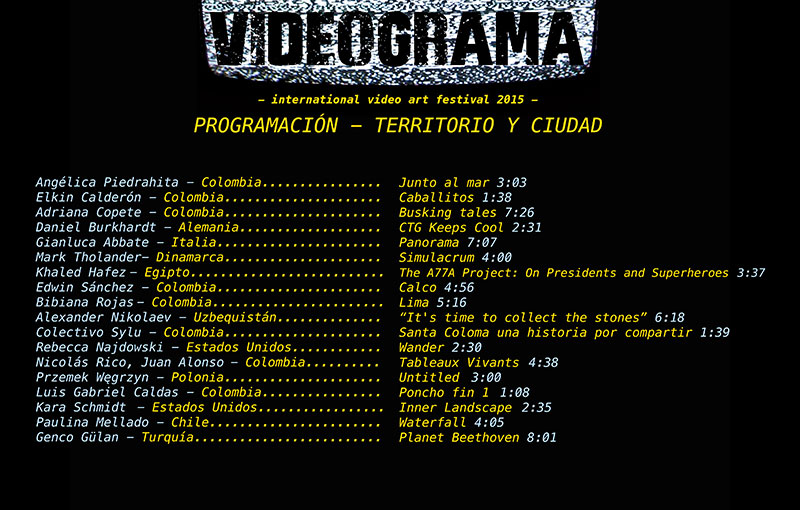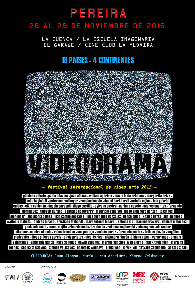 VIDEOGRAMA 2015 WILL BE PRESENTED IN PEREIRA FROM NOVEMBER 26 TO 29 AT L LA CUENCA RESIDENCIA ARTÍSTICA, EL GARAGE, LA ESCUELA IMAGINARIA Y EL CINE CLUB LA FLORIDA (Event organized by Patasola Collective and La Cuenca Artist Residence)