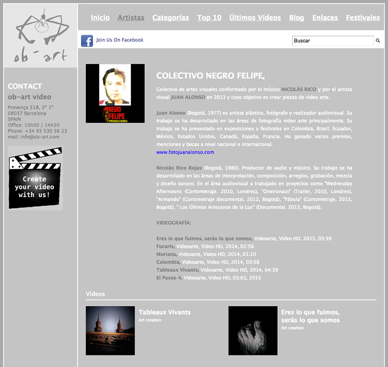 The latest video from Negro Felipe Producciones (Nicolás Rico, Juan Alonso) premieres at the Cosmix Experimental Film Festivalin La Cobateuse, Paris, France on May 13-14.