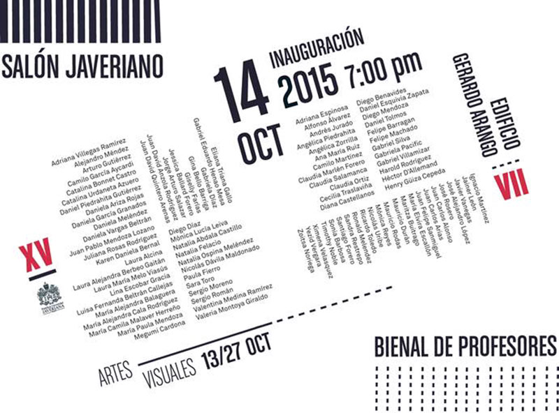 OPENING "VII BIENNIAL OF TEACHERS OF VISUAL ARST DEPARTMENT FROM JAVERIANA UNIVERSITY", OCTOBER 14th, 7PM, EXHIBITION HALL, GERARDO ARANGO BUILDING, JAVERIANA UNIVERSITY.