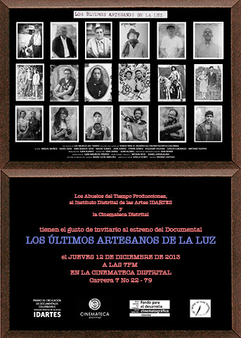 "THE LAST CRAFTSMEN OF LIGHT" PROJECTED IN THE PROGRAMM "FILM AND PHOTOGRAPHY IN COLOMBIA", FUNDADORES HALL, MEXICO THEATRE, November 17th, 4:30 pm!