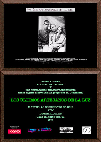 PROJECTION AND SPEAKING OF THE DOCUMENTARY "THE LAST CRAFTSMEN OF LIGHT" at "II Encounter of Photography, Culture and Society", Julio Arboleda Auditorium, Unicomfacauca, September 29th, 4:40 pm.