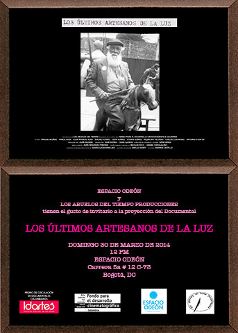 OFFICIAL SELECTION IN CATHEGORY OF DOCUMENTARY ABOUT ART "ENRIQUE GRAU" TO THE DOCUMENTARY "THE LAST CRAFTSMEN OF LIGHT", BOGOTÁ FILM FESTIVAL, October 20th to 28th! http://www.bogocine.com/